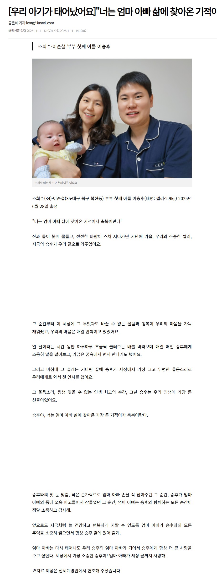 [우리 아기가 태어났어요]"너는 엄마 아빠 삶에 찾아온 기적이자 축복이란다"