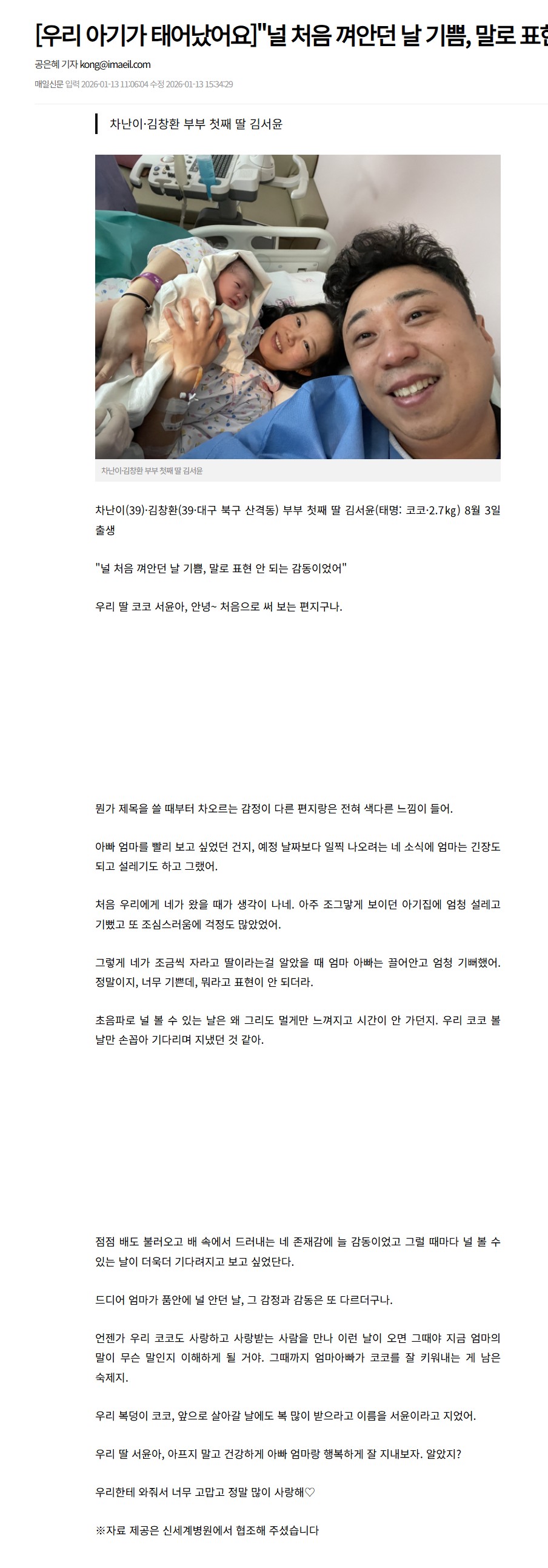 [우리 아기가 태어났어요]"널 처음 껴안던 날 기쁨, 말로 표현 안 되는 감동이었어"