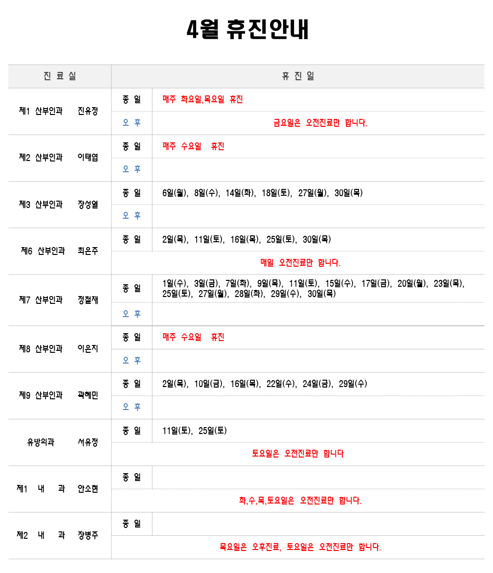 4월 휴진안내