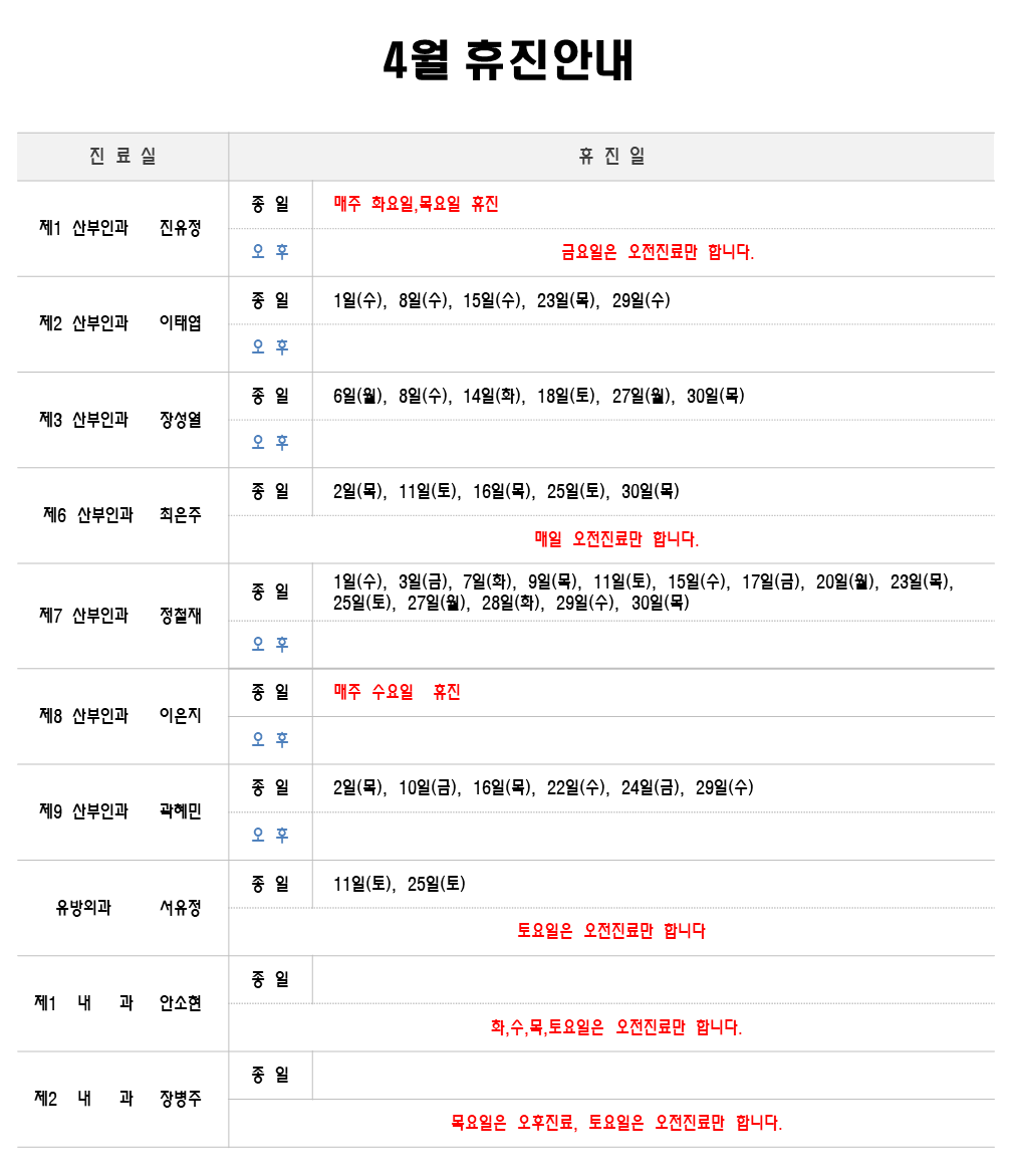 4월 휴진안내