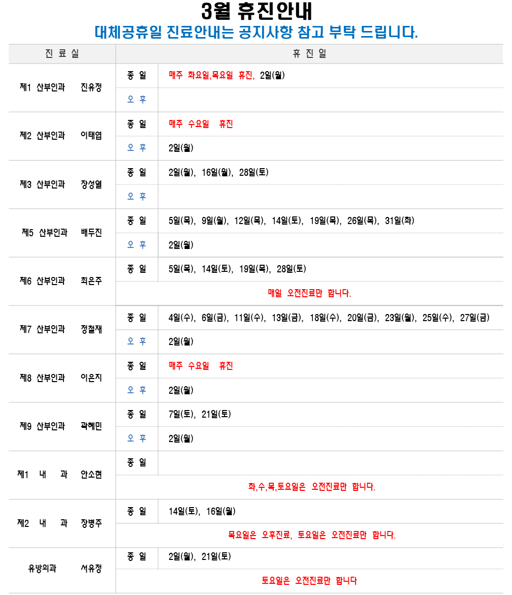 3월 휴진안내