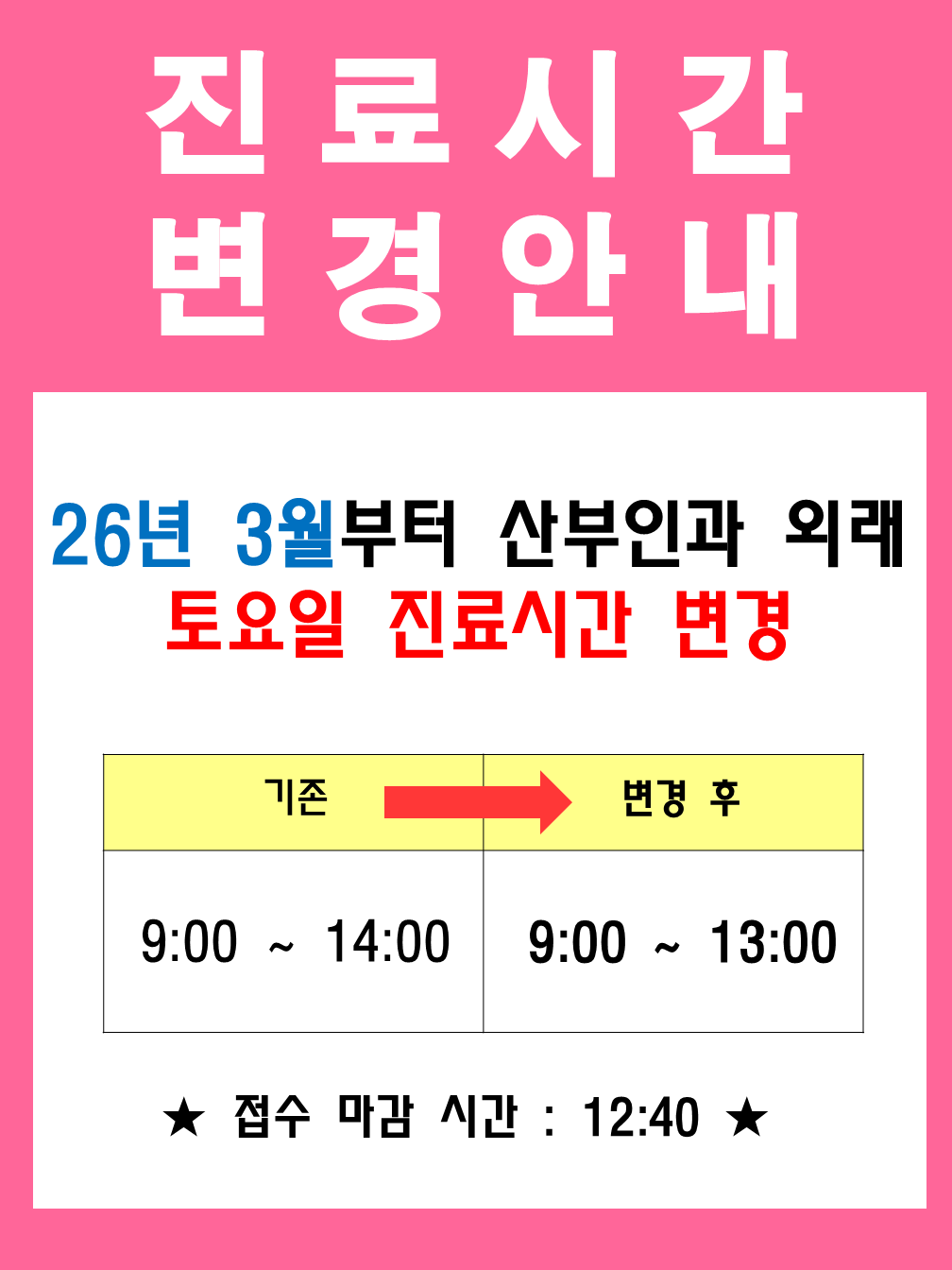 토요일 산부인과 진료시간 변경안내
